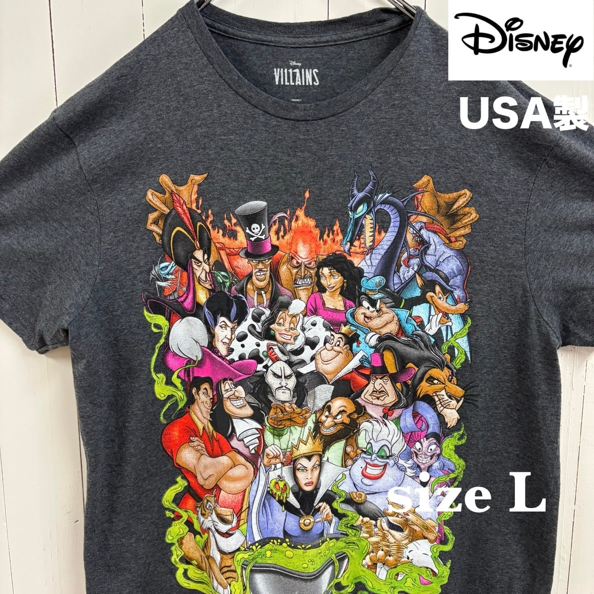 【古着】Disney(ディズニー)半袖Tシャツ L グレー USA製 ヴィランズ レアデザイン アメリカ古着 キャラクター
