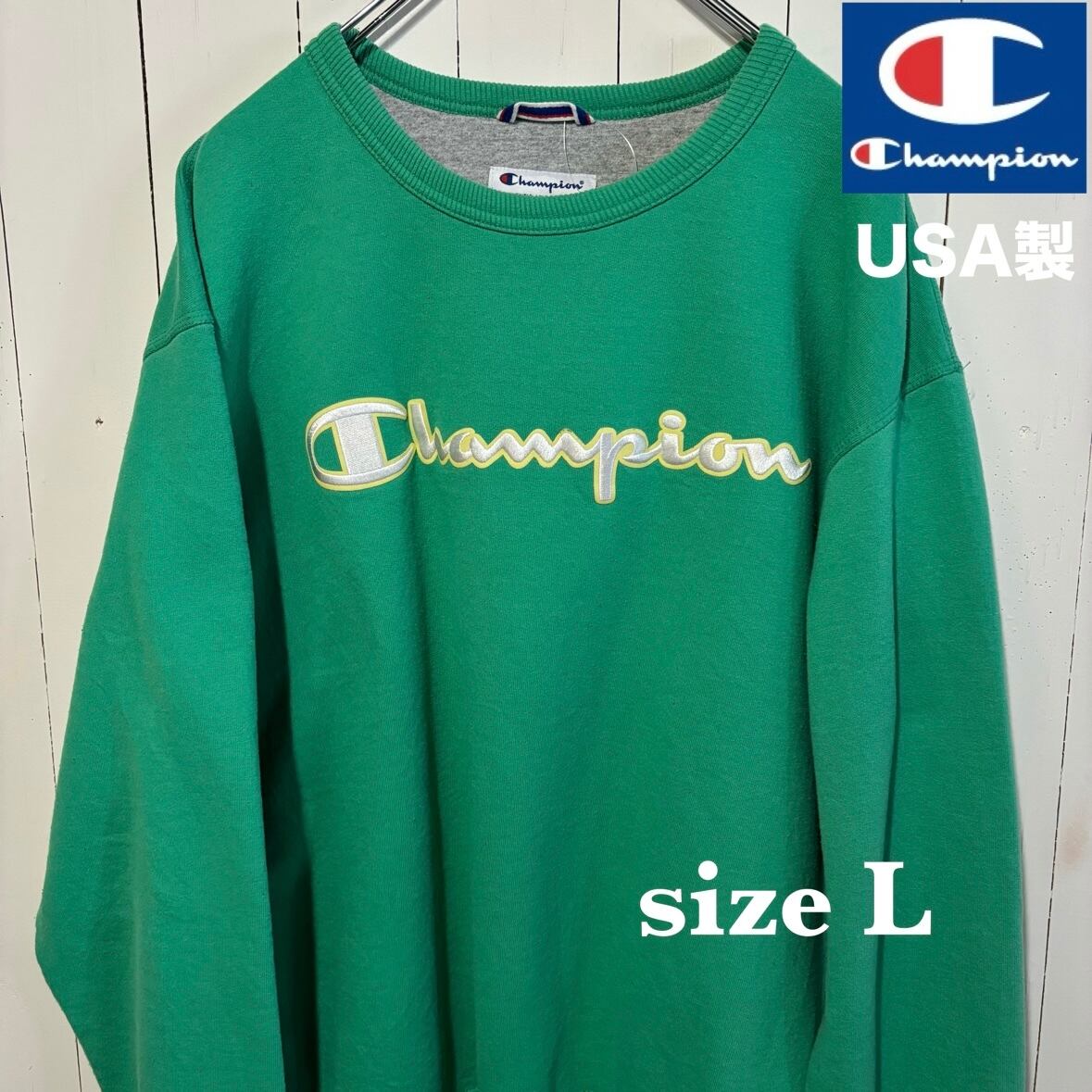 【古着】champion(チャンピオン)スウェット L グリーン トレーナー USA製 アメカジ アメリカ古着 ロゴ刺繍