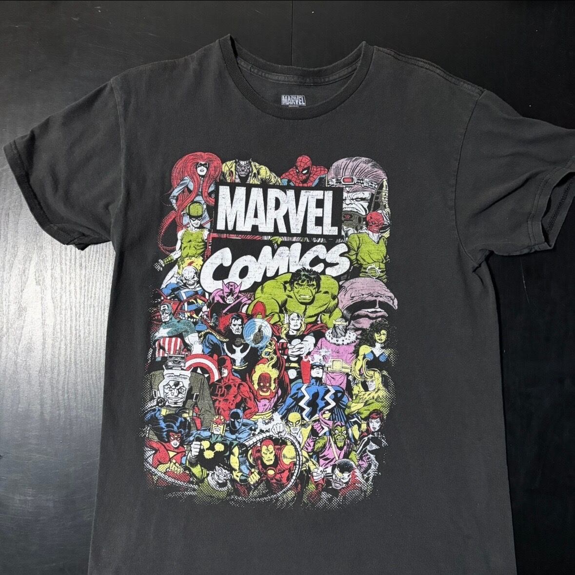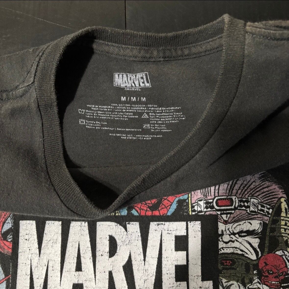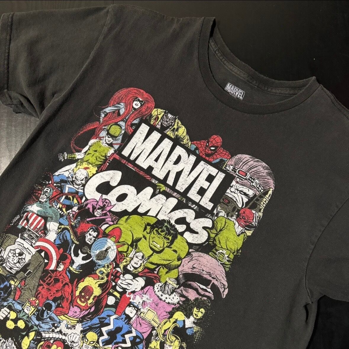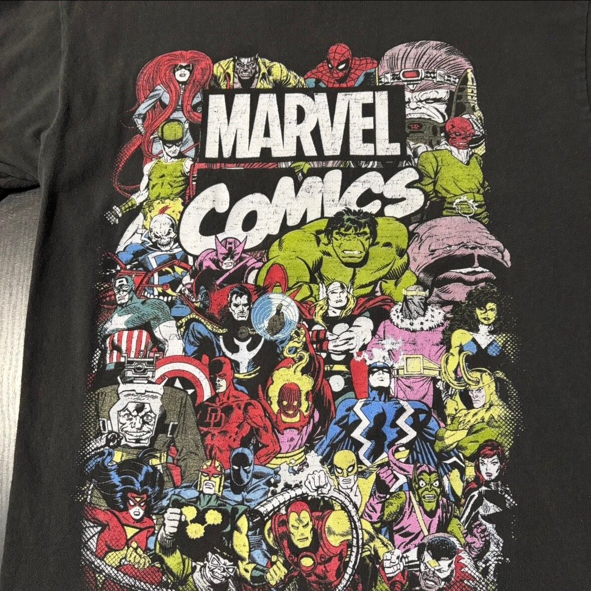 マーベルのキャラクターがアメコミ風に描かれたプリント