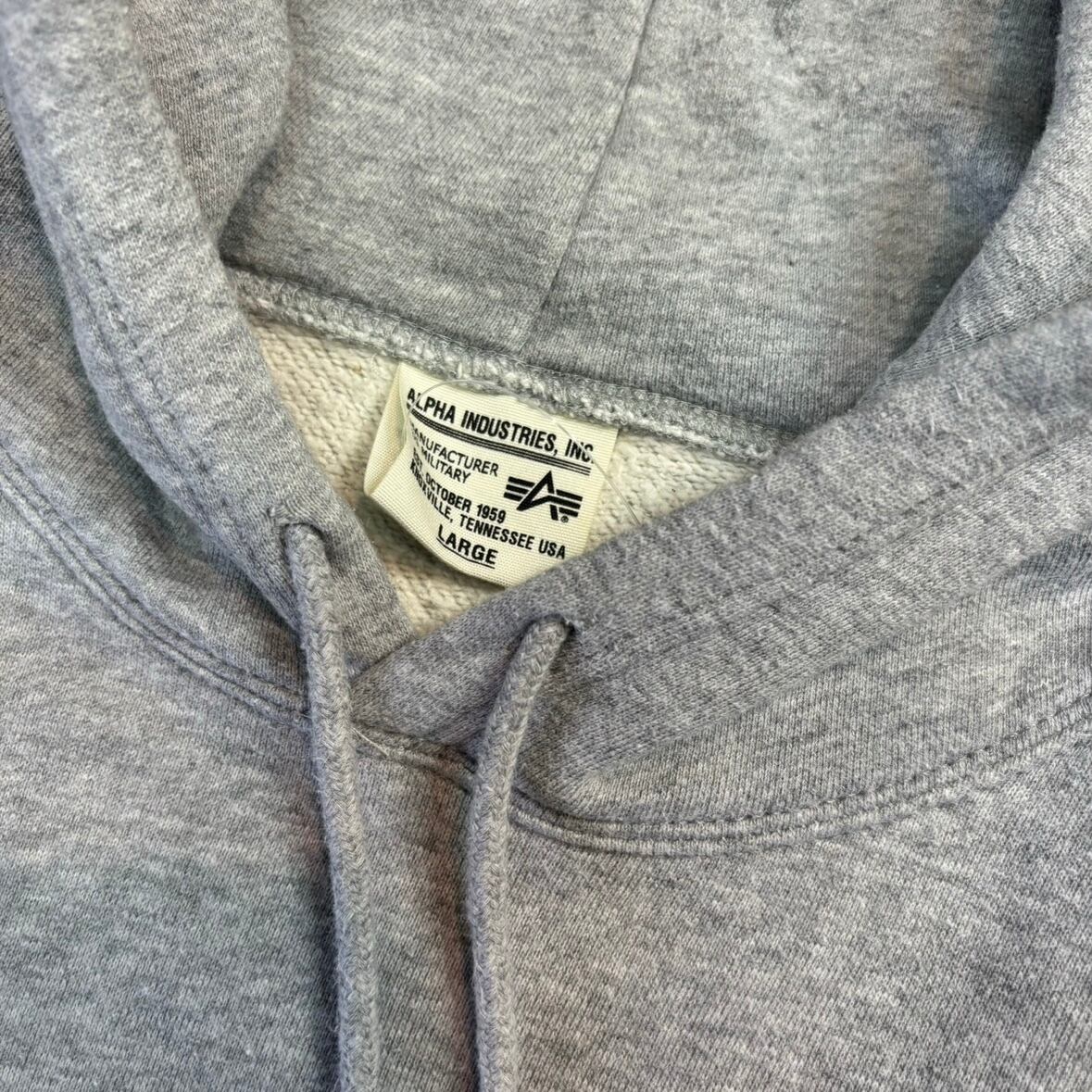 【古着】ALPHA(アルファ)パーカー L グレー カモフラロゴ ミリタリー